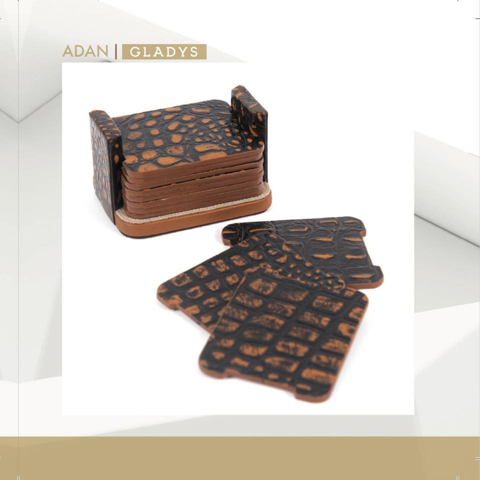 10 sous-tasses en cuir, création de Gladys à la Soukra.