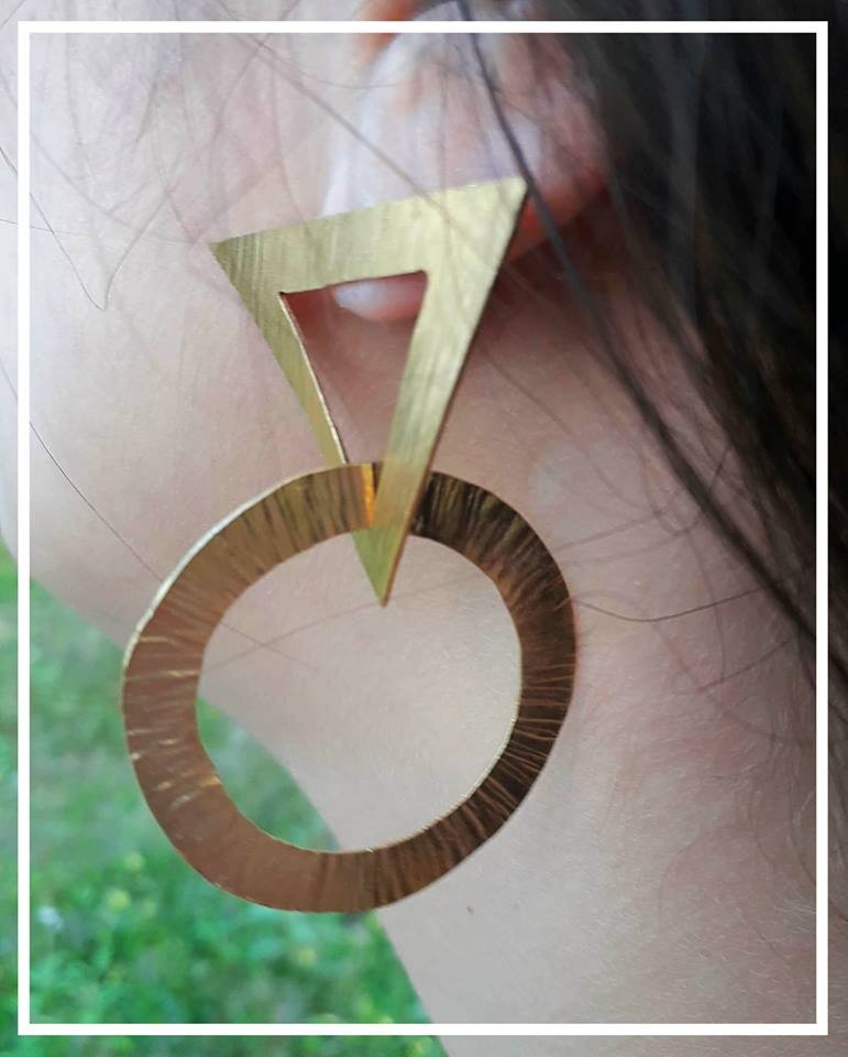 Boucles d'oreille triangle en cuivre platiné trempé dans l'or, création de Foorma à Tunis.