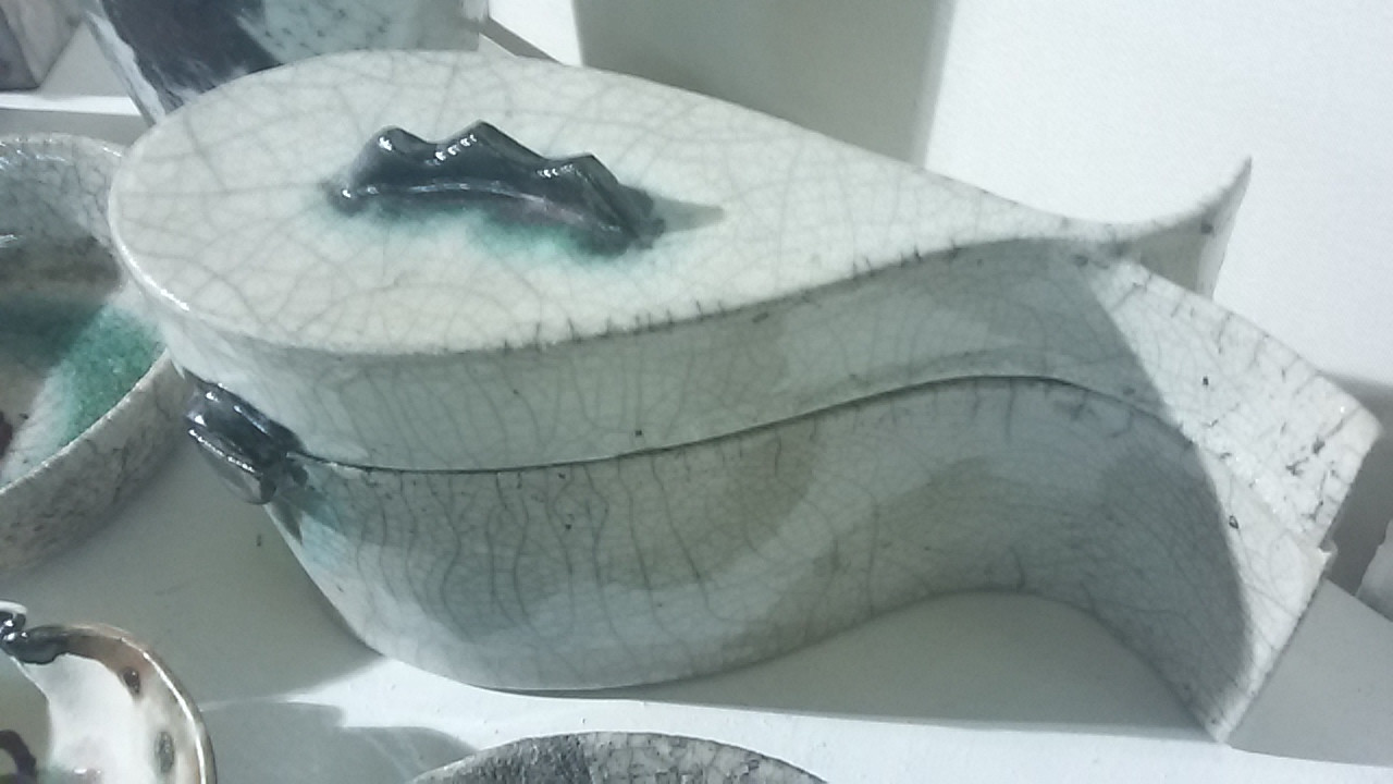 Boîte poisson en céramique Raku, création de Trefle d'Art à Beni Khalled.