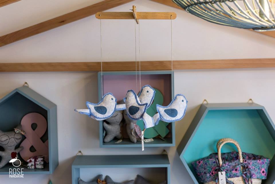 Mobile oiseaux pour chambre bébé, création de Rose Mandarine à la Marsa