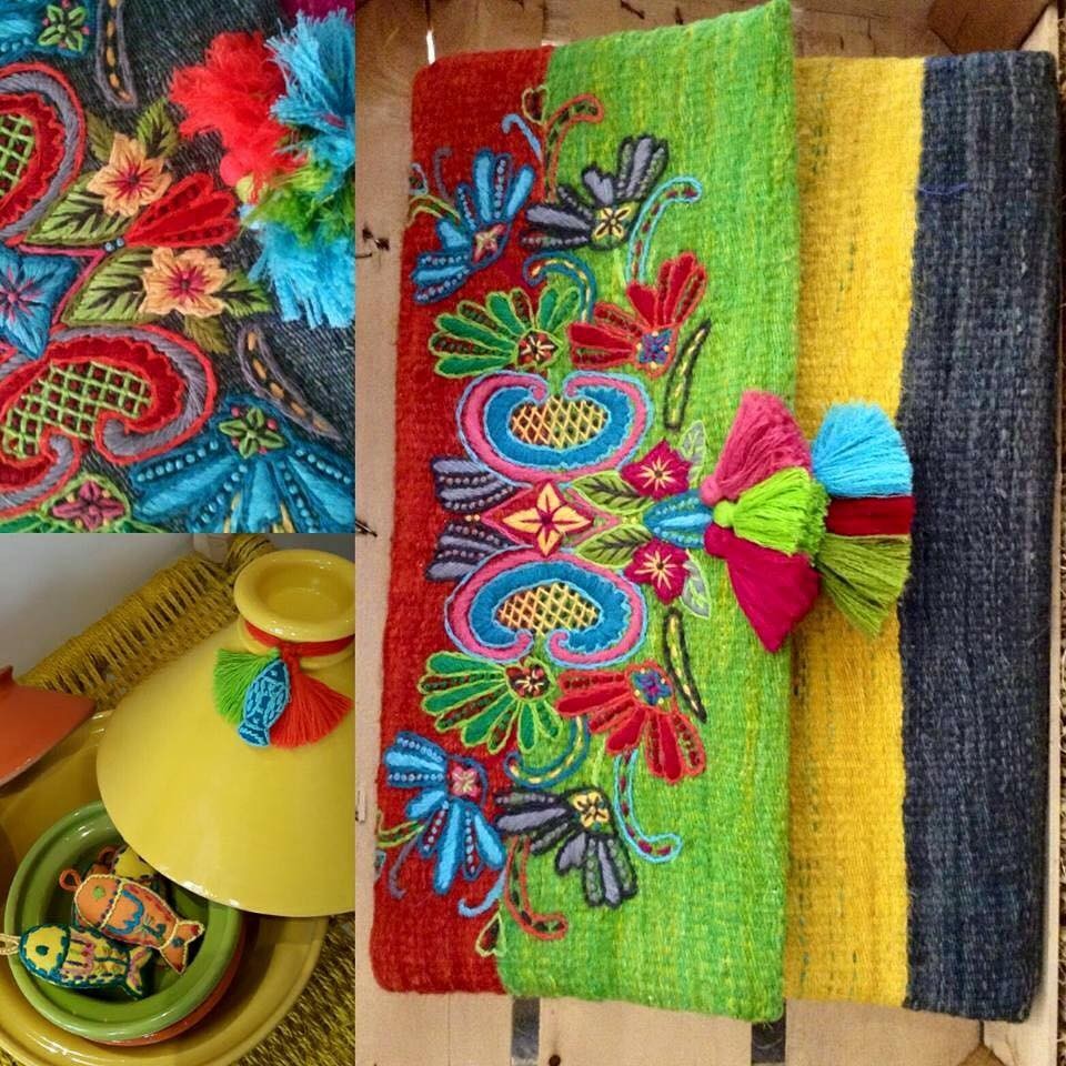 Pochette brodée multicolore, création de Fil d'Art à la Rue Dar el Jeld en plein coeur de la Medina de Tunis.