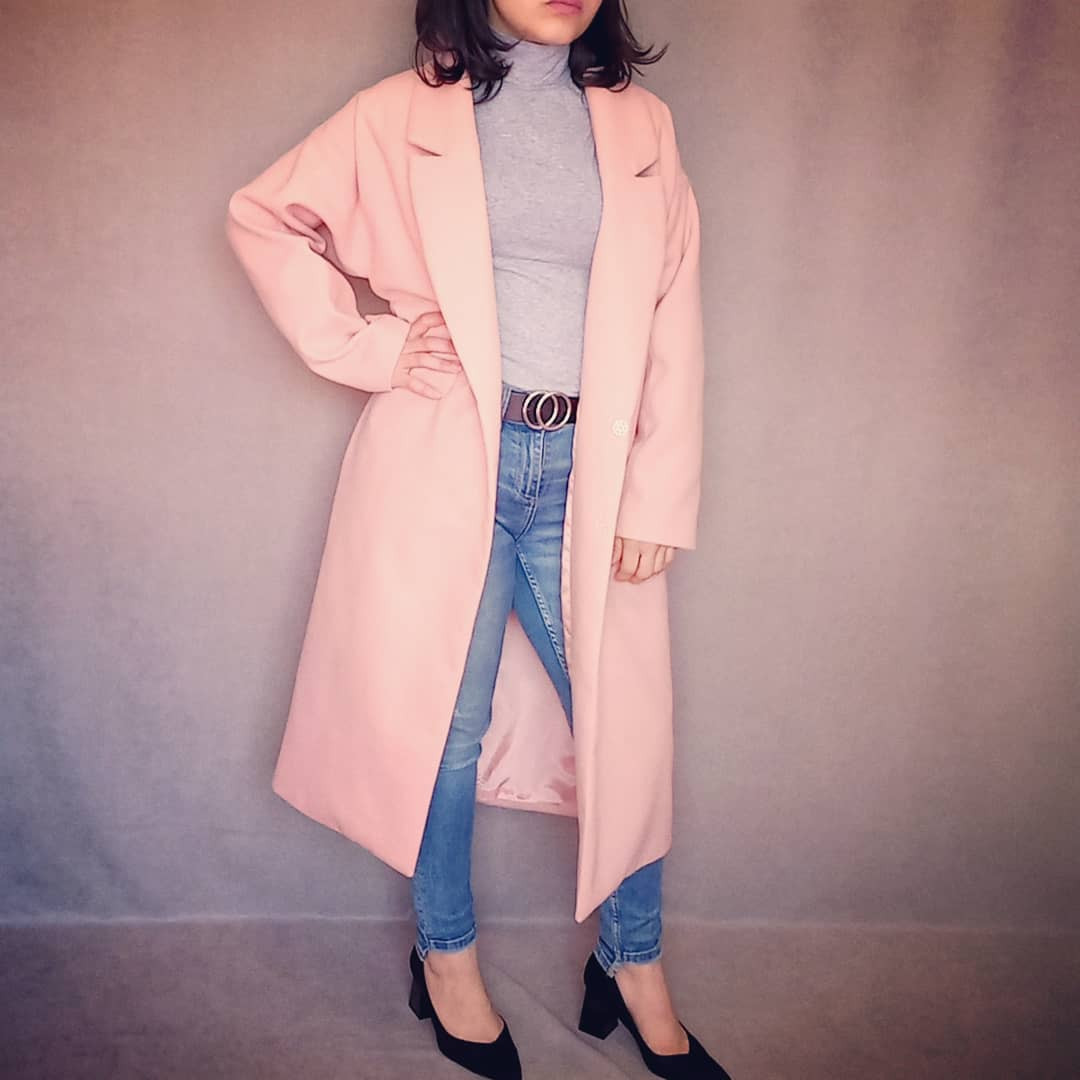 Manteau rose confectionné par Fatma Hachicha Couture à Tunis.