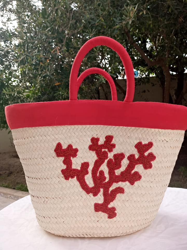 Couffin brodé corail, en vente à la boutique Skifa à Bizerte.