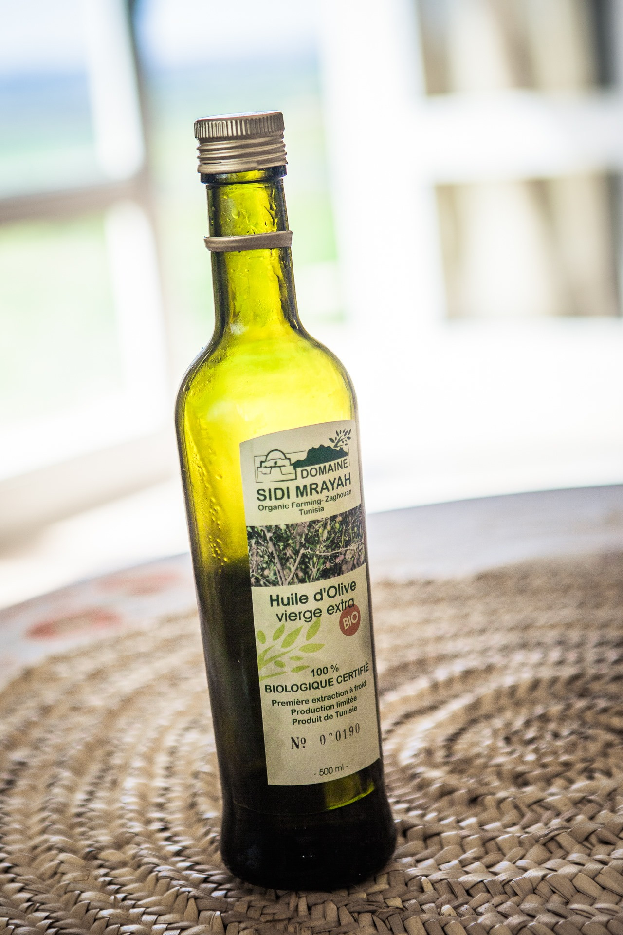 Huile d’olive 100% biologique certifiée du Domaine Sidi Mrayah de la Ferme Lakhoua à Zaghouan. Disponible en bouteille de demi litre ou bidon de 1l ou 3l. En vente à la boutique Vi à la Marsa et à l''épicerie fine Cacciola au Kram.