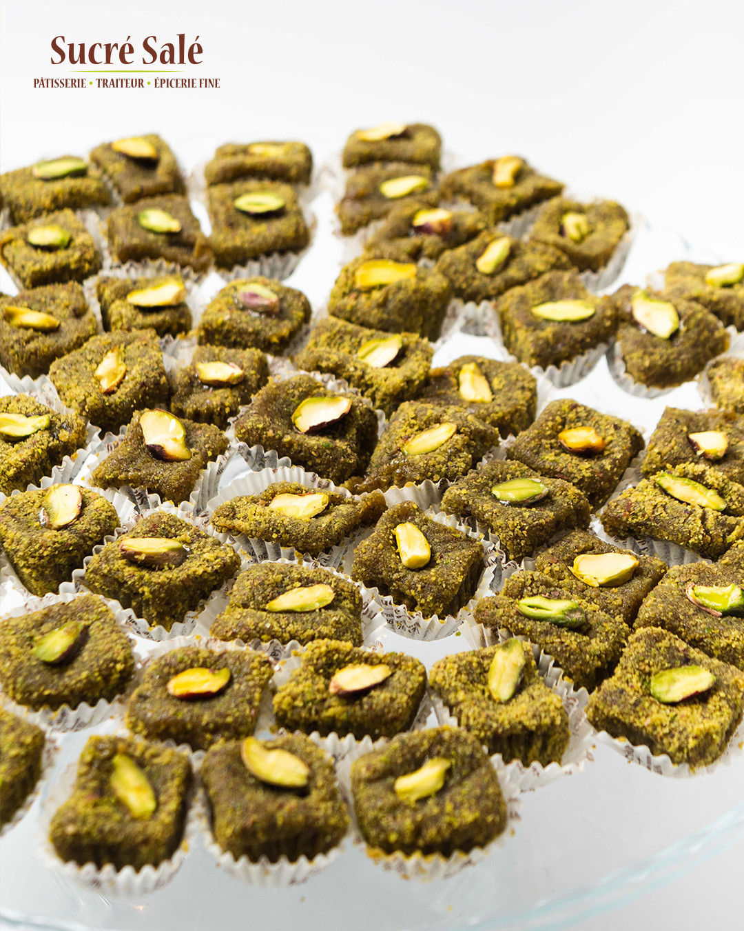 Bouchées moelleux pistache, en vente chez "Sucré Salé" à Menzah 5.