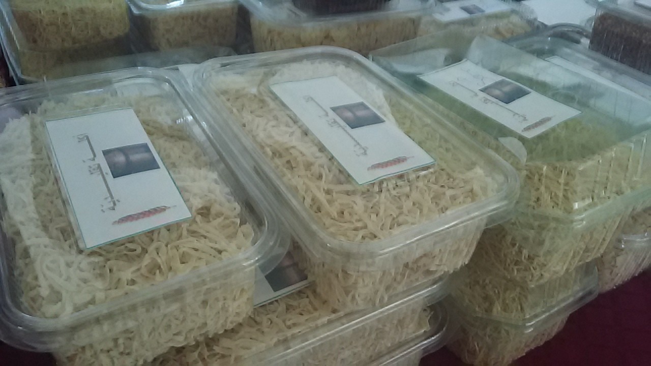 Pâtes "Njara" préparées par Zina Hannachi à Tebourba. Des pâtes à utiliser comme dessert sucré. Le paquet est à 2dt.